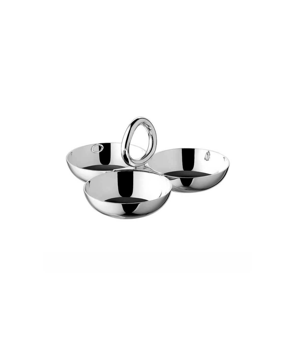 The Christofle "Vertigo" triple dishes are ideal for three different marmelades on the breakfast table or for savoury snacks in the lounge. The simple but stylish, silverplated dishes have a timeless beauty.