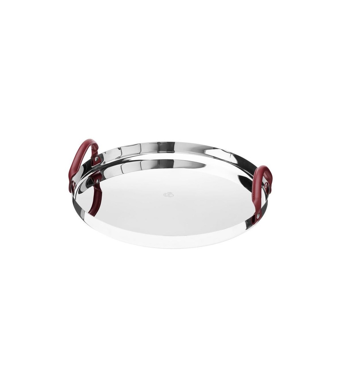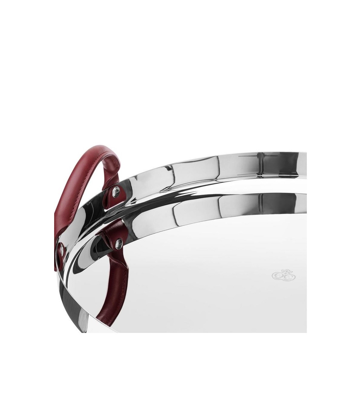 The mixture of highly polished stainless steel and cherry-coloured cowhide leather handles is extremely contemporary.