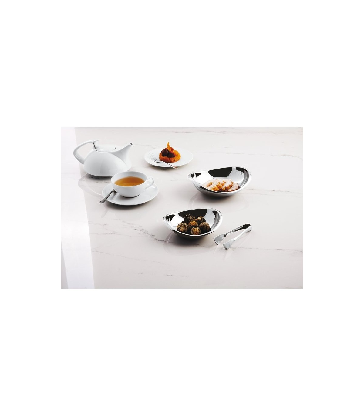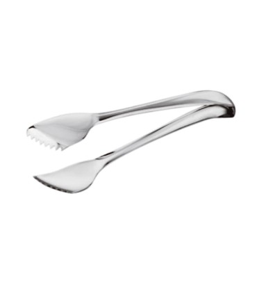 The tongs can pick up portions of vegetables, bread and pastry by a simple pressure of the hand, while the scissors are for precise serving. Stainless steel. Suitable for dishwasher