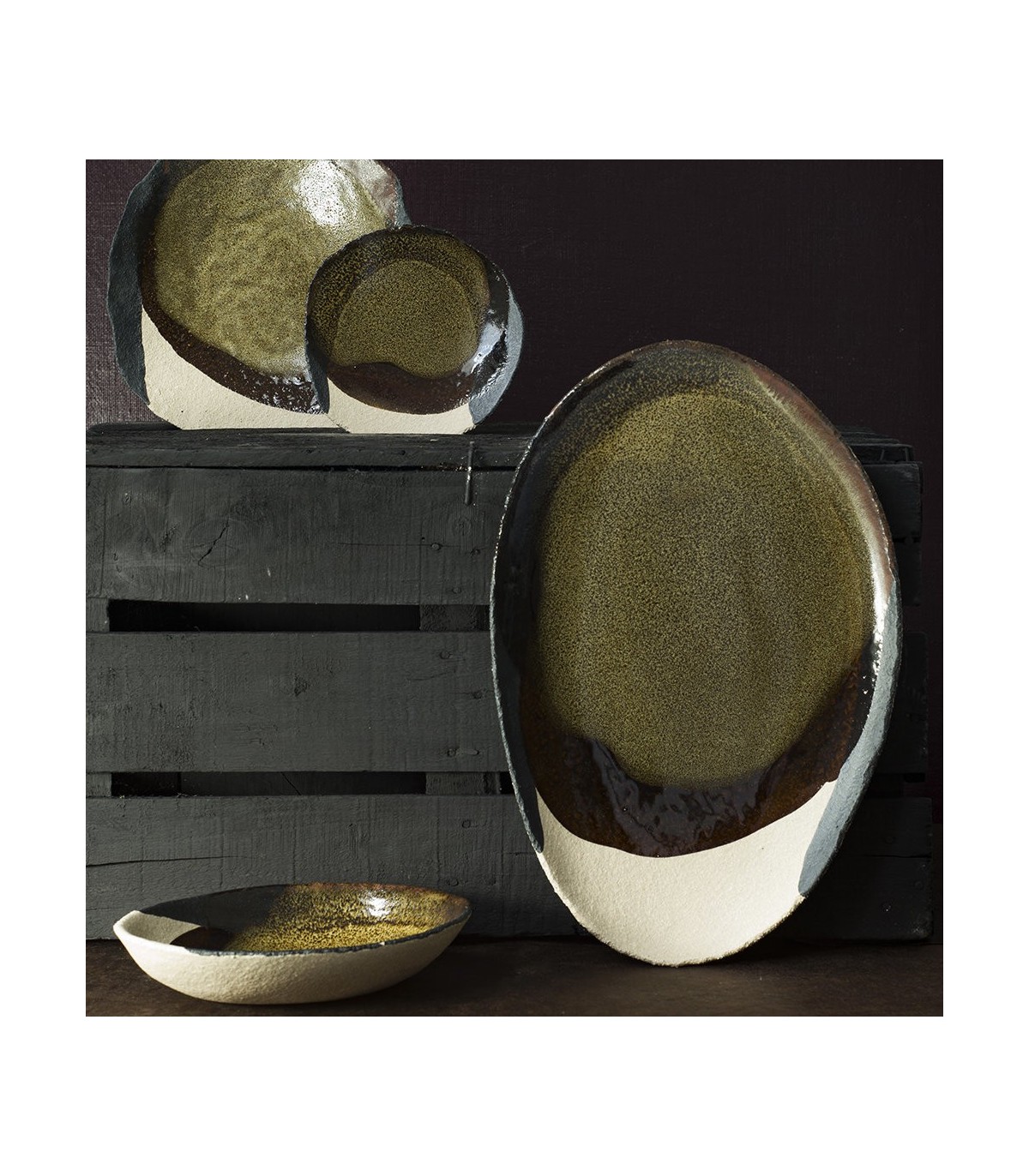 In a beautifully organic shape with an irregular edge, this dinner plate has been decorated with contrasting glazing techniques from tossing to ladling, to create a unique finish for each piece. Expertly handcrafted from ceramic, it has been made using environmentally sound practices and is the star of the Wabi range.