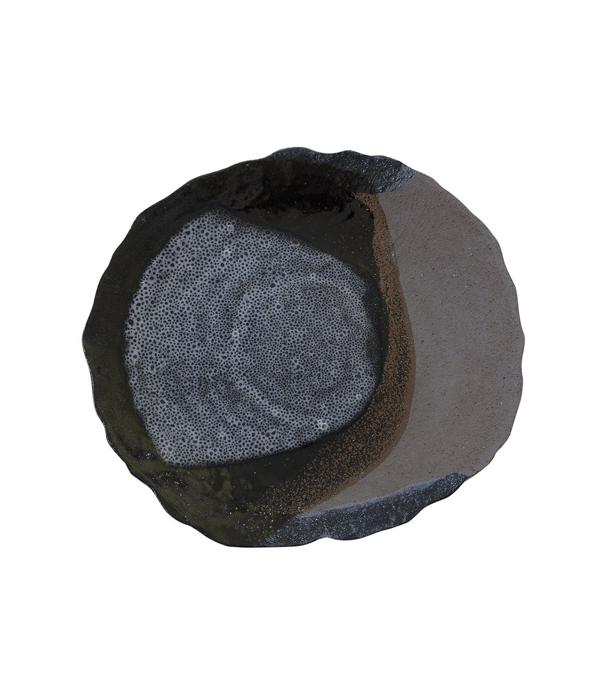 In a beautifully organic shape with an irregular edge, this dinner plate has been decorated with contrasting glazing techniques from tossing to ladling, to create a unique finish for each piece. Expertly handcrafted in France from ceramic, it has been made using environmentally sound practices and is the star of the Wabi range.