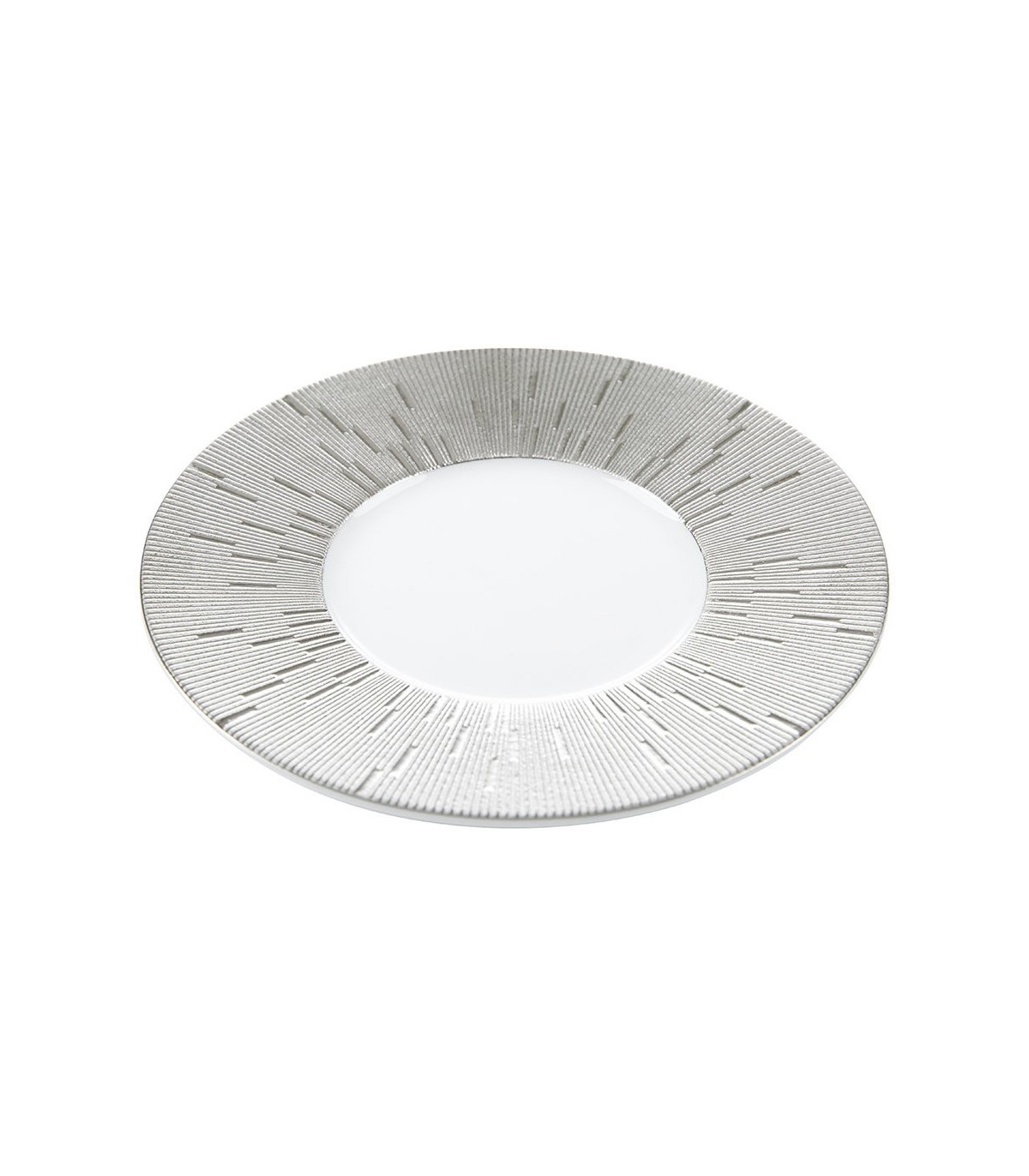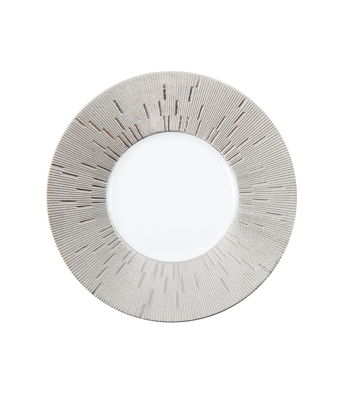 Made using exquisite Limoges porcelain it has been crafted with a chic textured rim that forms a beautiful contrast to its smooth centre. This contrast is emphasised by elegant platinum colouring along its outer edge. Complementing a number of table setting this pate makes a fabulous addition to any home.