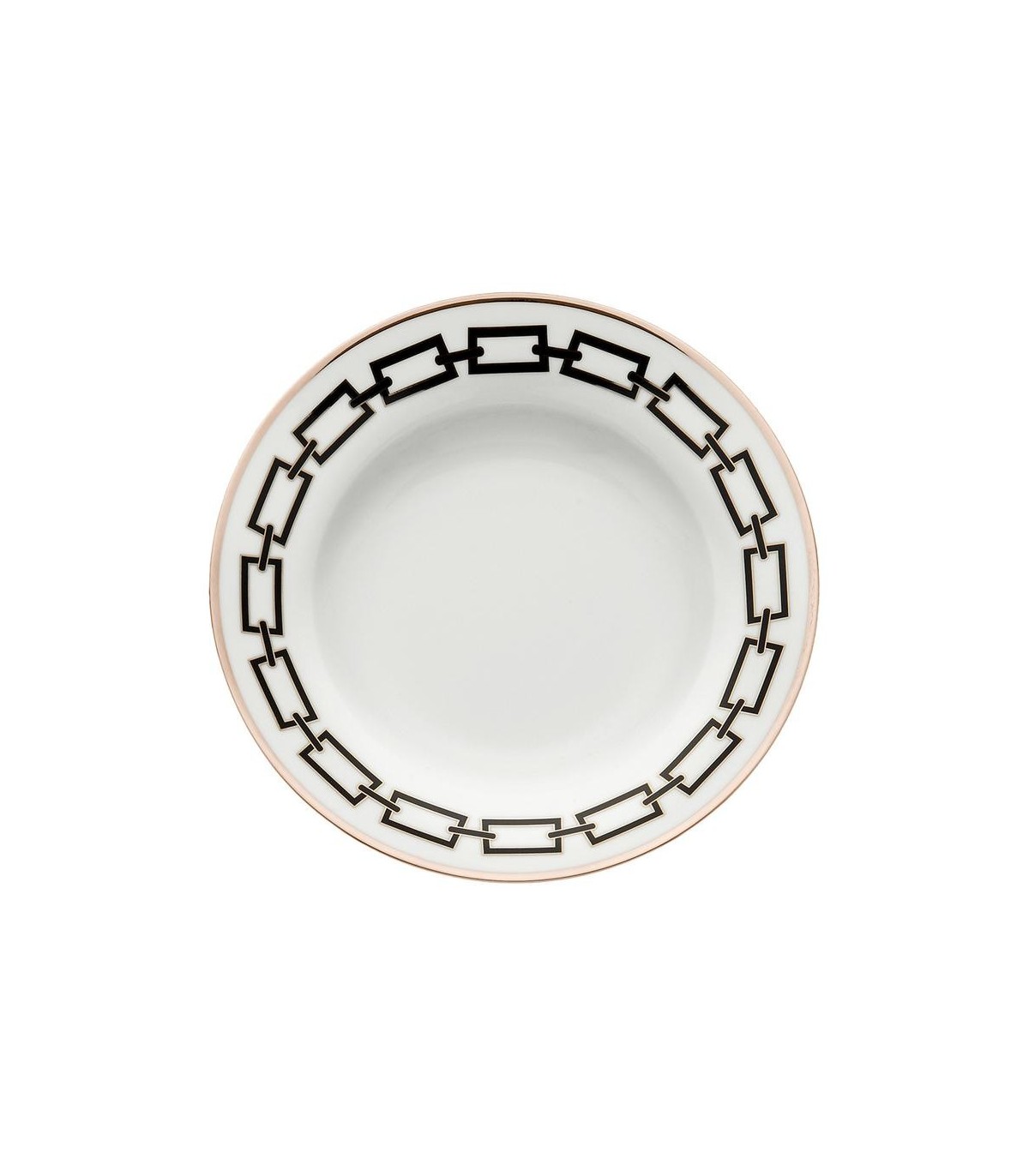 The black links of the chain are in exciting contrast to the pure white of the porcelain. The platinum refinement of the design lends the "Catene Nero" dinnerware an opulent character.