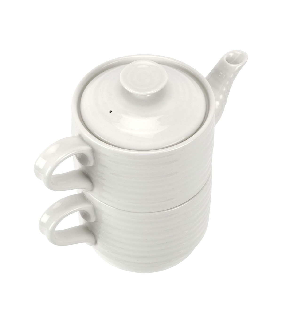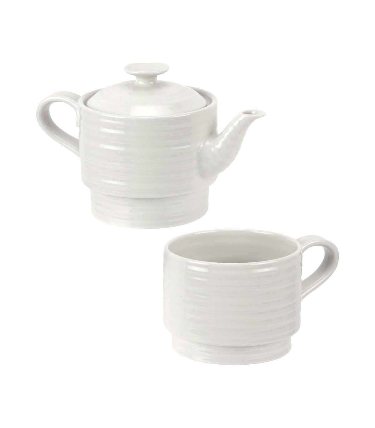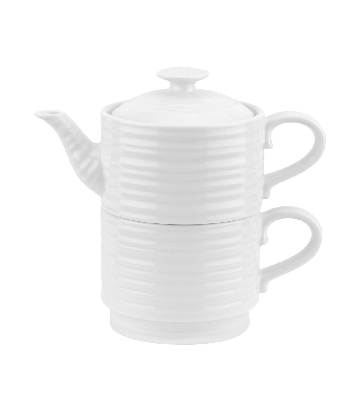 White porcelain stackable tea & cofee pot, designed by Sophie Conran