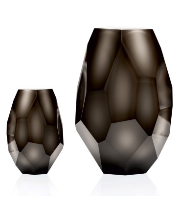 Hand-blown vase in combination of uranium glass laminated with amber glass. The vase is hand cut by edge grinding into large areas to show a beautiful color combination of glass and its gradual fine transitions. The vase has a subtle elegance and a light watercolor style that brings a calm atmosphere and light to the interior.