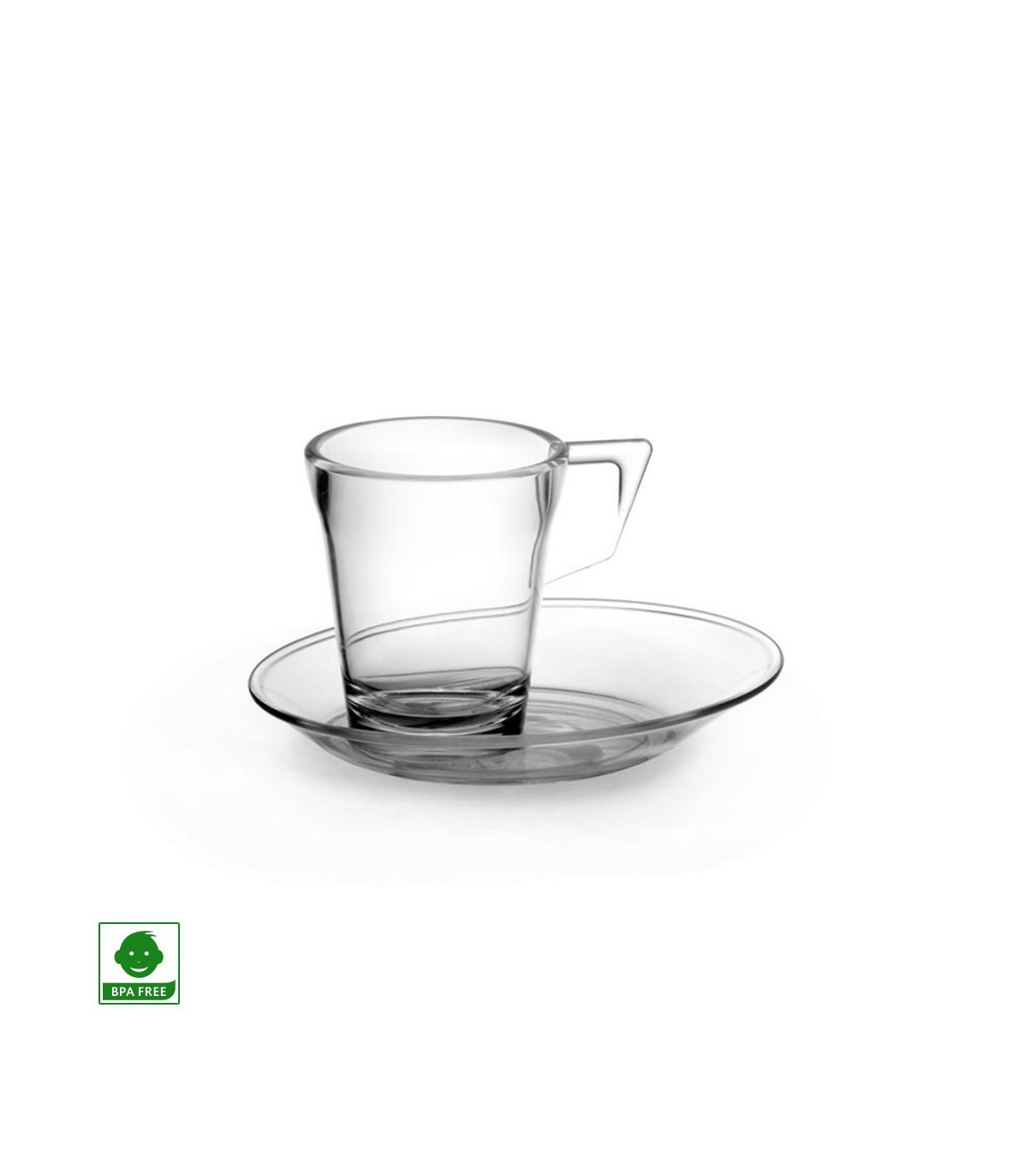 transparent coffee cup with saucer, dishwasher safe