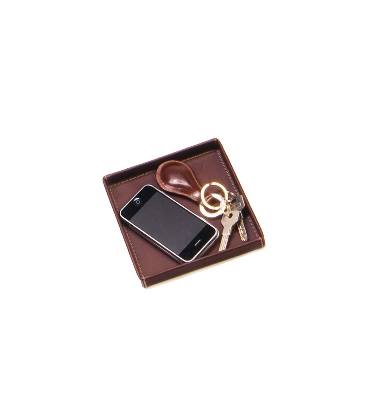 Square pocket emptier leather tray with metallic shell