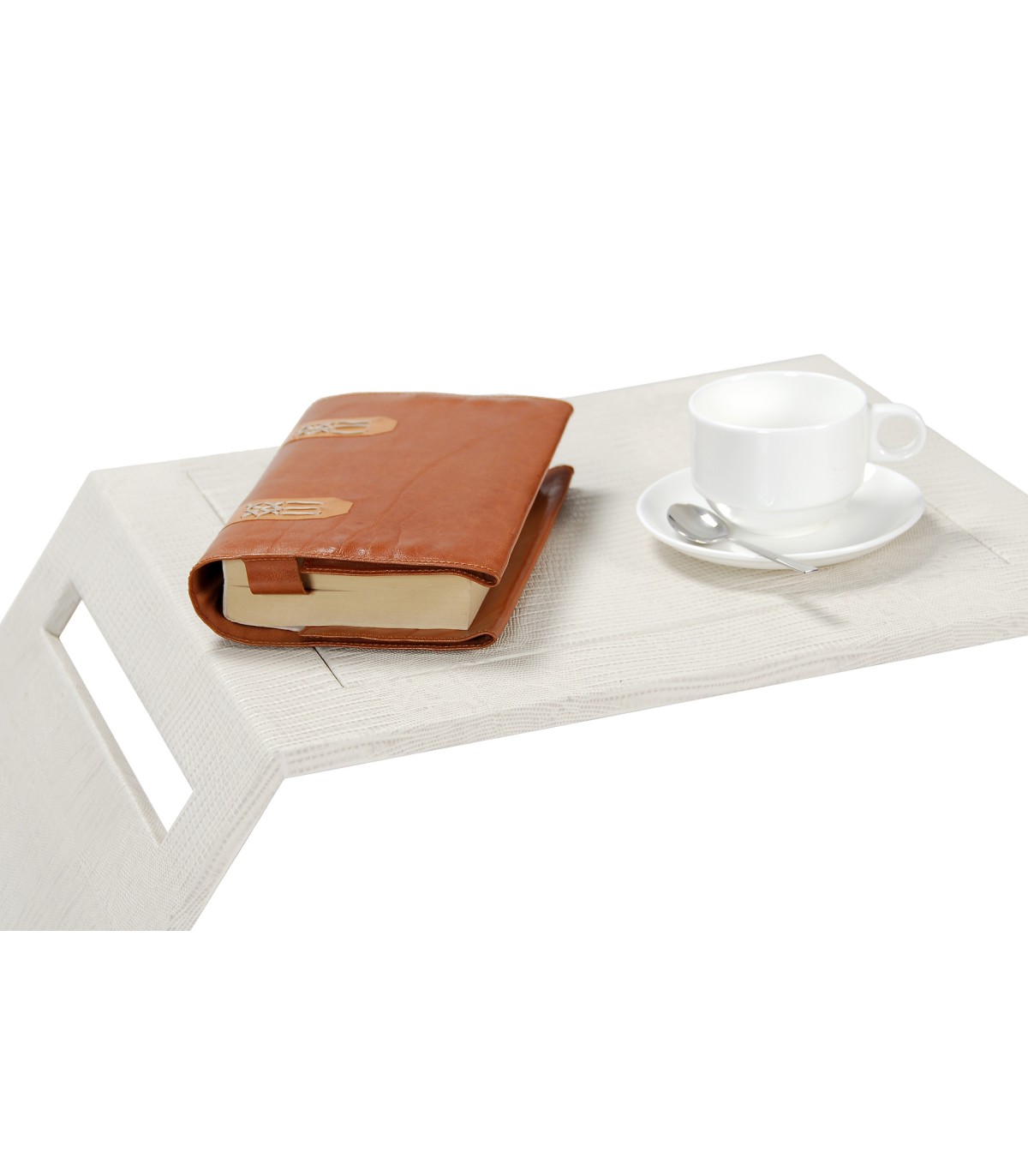 Bed tray with total support surface and folding and adjustable reading base.