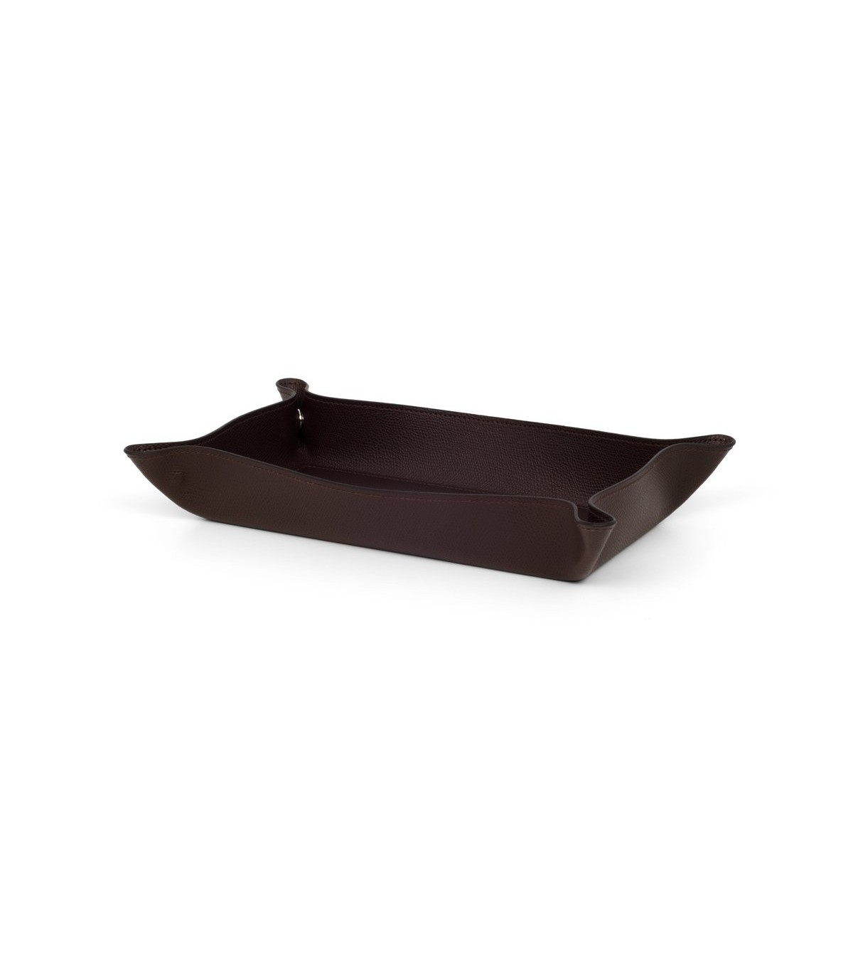 Made entirely of natural leather, its flawless finishing touches make this a decorative object that is refined highly practical as well. With its flat bottom and raised edges, the uses for this beautiful leather tray are endless.