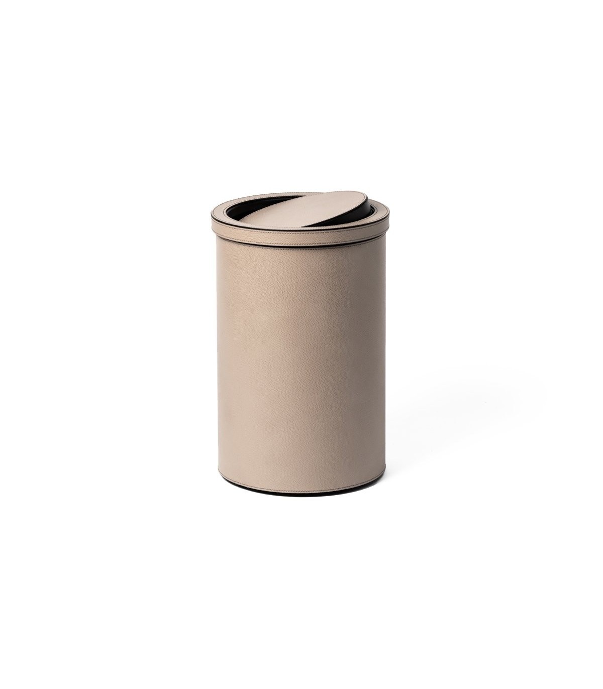 Our round metal bin with tilting lid is perfectly sized for use in the bathroom.