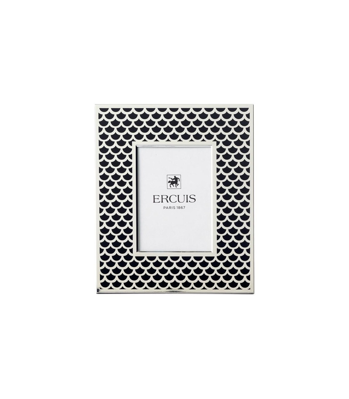 The "Calypso" picture frame from Ercuis is black lacquered resin shows the silverplated design to great advantage.