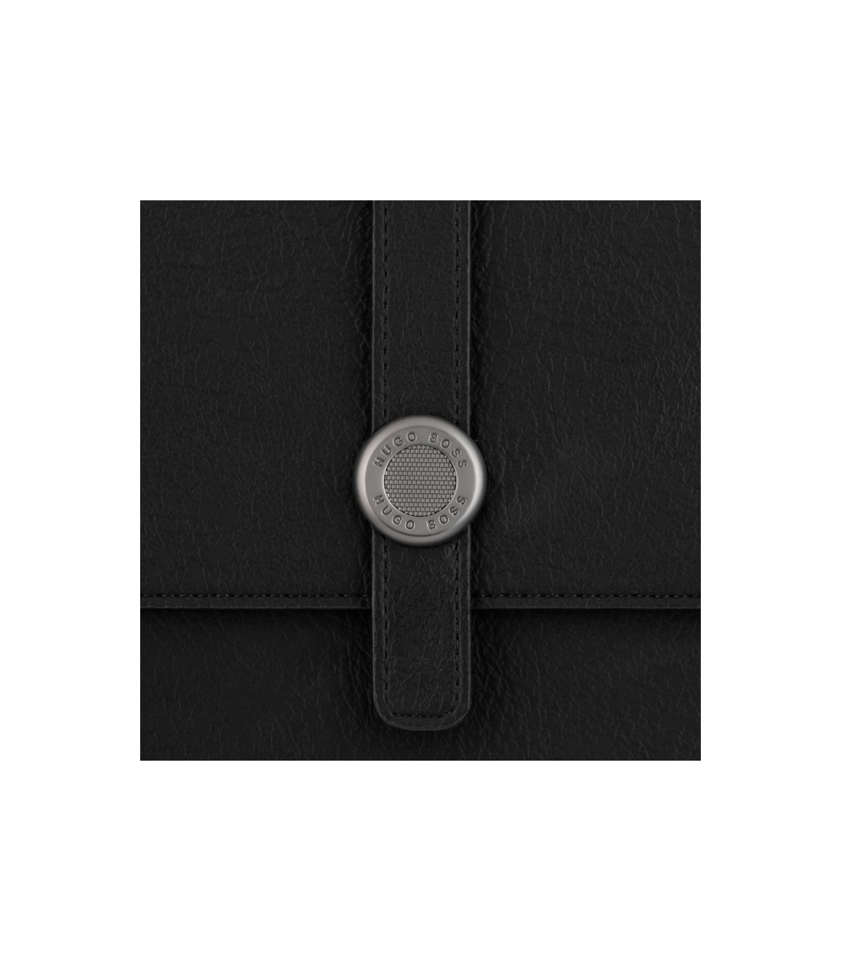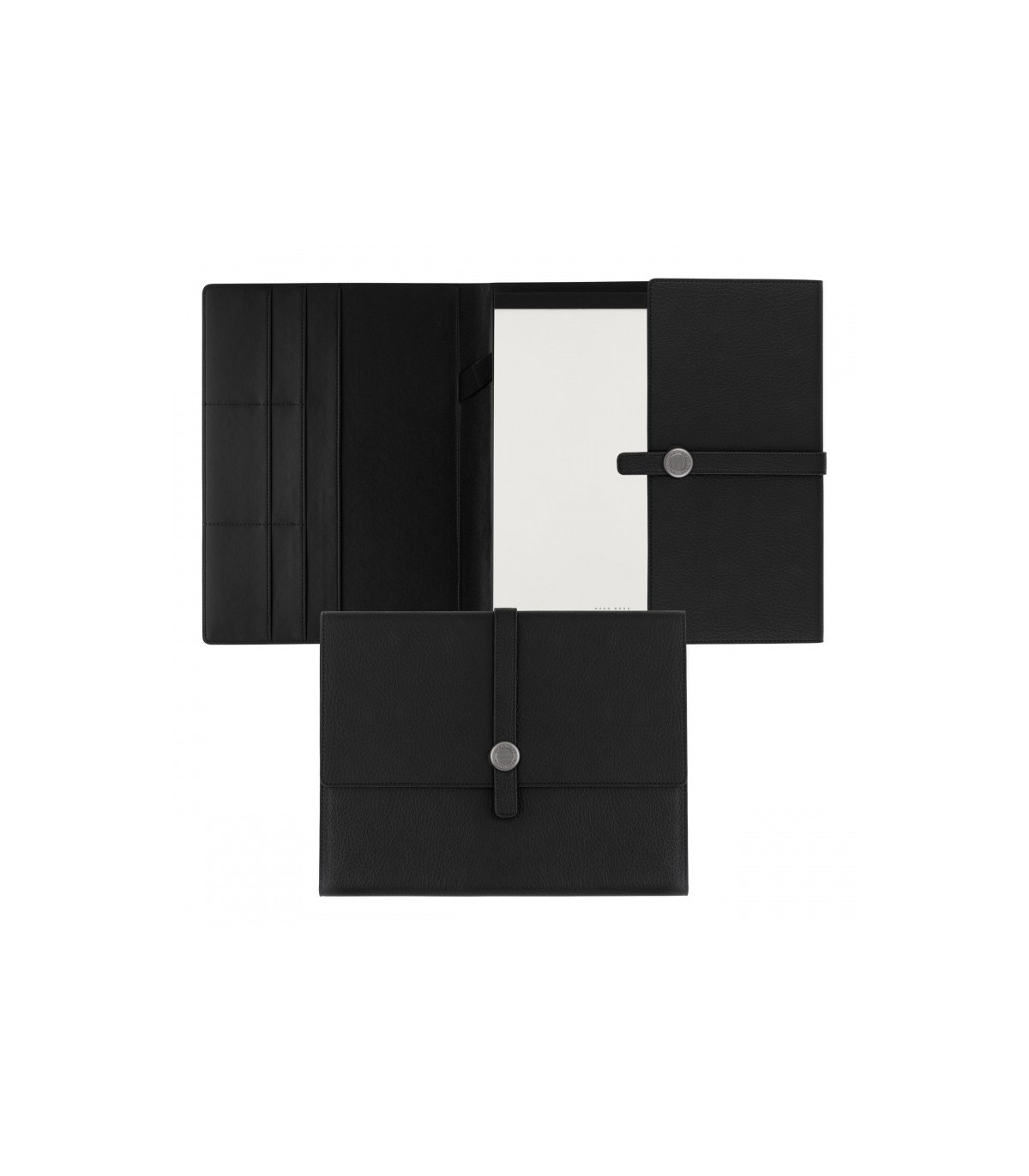 The "Executive" folders are designed to become instant classics. They are made from a soft, large-grain material and are enhanced by their ingenious yet minimal closure system, articulated around an elegant matte silver metal bridge. These essential pieces will match the writing instruments from the entire HUGO BOSS range. The A4 folder is available in black and matt metal.